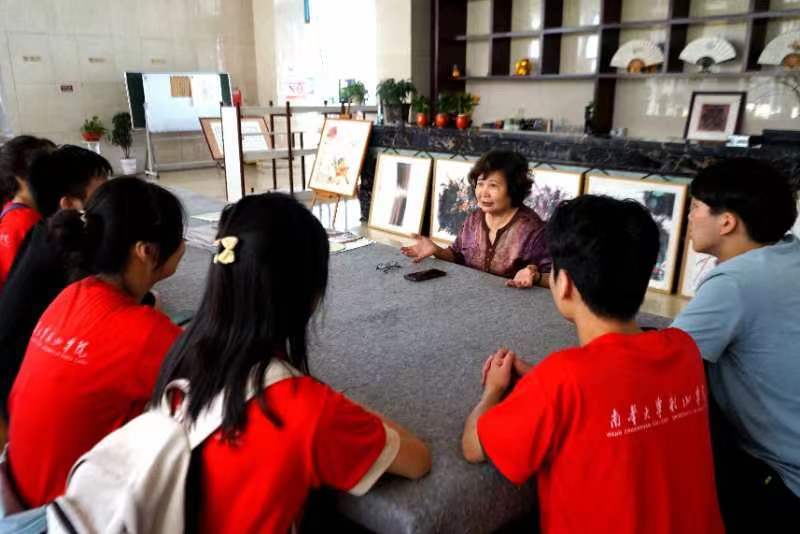 在女书艺术馆,团队成员对女书传承人何跃娟老师进行了采访。何跃娟老师讲述了文创产品的创新设计理念以及市场接受度,并且一起讨论女书文化产业的发展现状以及对未来的期望。(范呈鹏 李静雅 王培翰)
