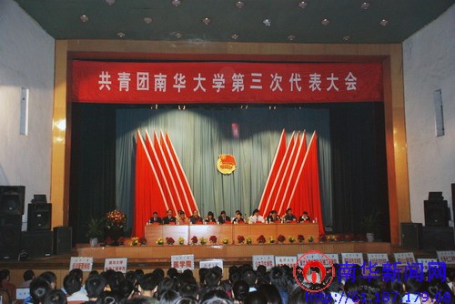 高举邓小平理论伟大旗帜,以“三个代表”重要思想为指导,深入学习贯彻党的十七大会议精神,团结并带领广大团员青年以“四个新一代”的要求勤奋学习、开拓创新,甘于奉献,为构建我校共青团工作新格局、实现我校“十一五”发展目标和教育强省目标而努力奋斗!