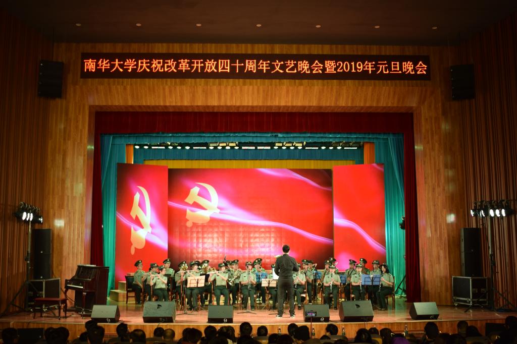 本次晚会以“潮涌新时代·奋进新南华”为主题,意在用歌舞的形式庆祝、回顾、铭记改革开放四十周年,并在新年来临之际承前启后、继往开来,表达南华人对新年的美好祝愿。晚会分为“春潮涌动”、“ 乘风破浪”、 “逐梦前行”三个篇章。一曲慷慨激昂的管乐合奏《走向复兴》将晚会拉开序幕。第一篇章《春潮涌动》中,混声合唱《传奇》、《在希望的田野上》和舞蹈《田间斗笠》向观众呈现了改革开放后焕然一新的中国。独唱《春天的故事》用耳熟能详的旋律使观众们回忆起我国改革开放总设计师邓小平同志和他建立的不朽丰碑。音乐快板《改革开放四十年》以欢快的节奏和通俗易懂的语言将我国传统文化“快板”与改革开放有机的结合,用脍炙人口的艺术形式让人们深深地体会到改革开放让中国大地发生的翻天覆地的变化,赢得全场掌声连连。