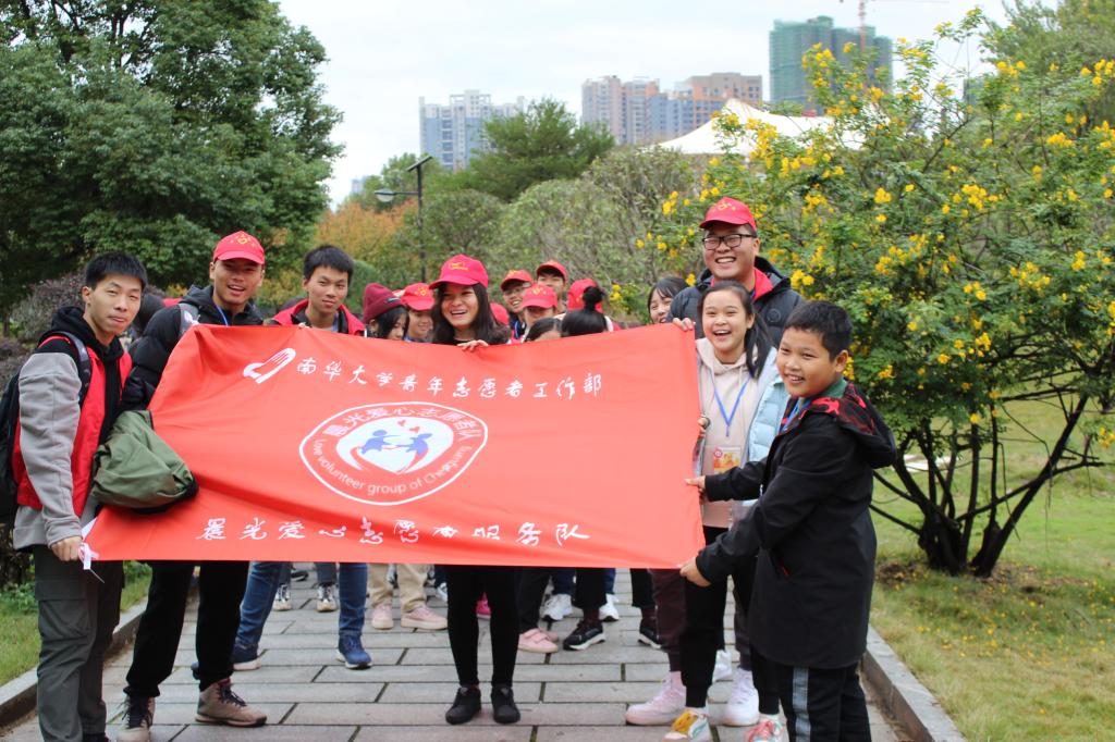 “爱心秋游活动”无论天气多么恶劣,也阻止不了志愿者的激情与活力,在长达六个小时的时间里,和小朋友们一起进行了游戏、参观南华园、共进午餐以及压花等一系列活动。通过折纸飞机、123木头人、萝卜蹲游戏与小朋友们进行有爱的互动。校园里满是欢欣笑语,这是晨光志愿服务队收获满满的象征。
