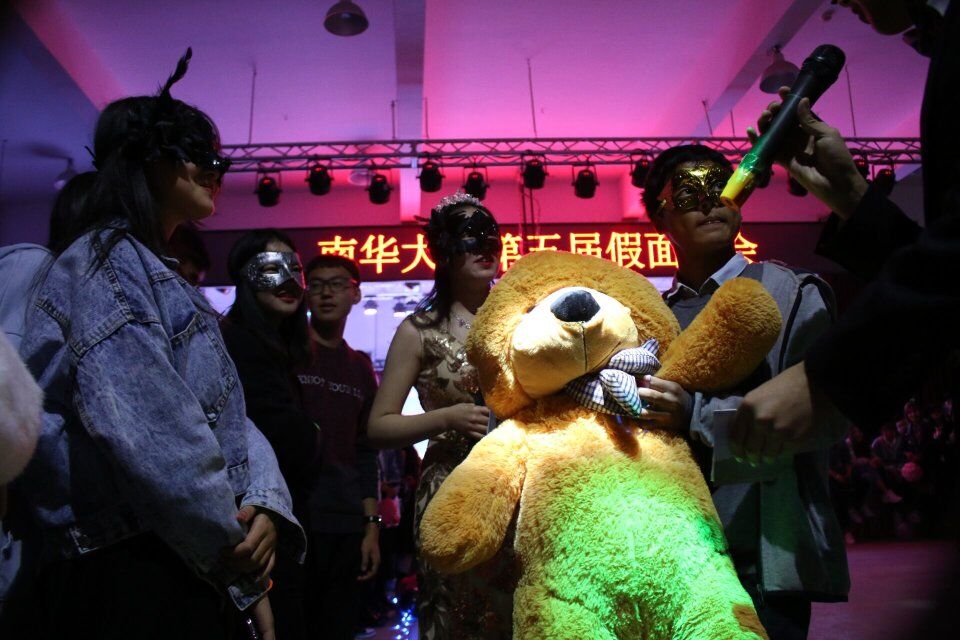 晚会即将开始,各项准备工作都在有序进行中。19时整,舞会的暖场开场秀开始,激情飞扬的街舞与说唱的串烧给人带来视觉与声音的震撼冲击感,迅速点燃会场。之后,舞会正式拉开帷幕。首先是由模特协会代表队带来的一段梯台走秀,在时明时暗的灯光与激情飞扬的音乐配合下,现场气氛瞬间升温。随后的活动采用系统实时抽号的形式邀请男女学生上台,进行假面舞蹈的现场教学和模仿比赛。大家配合默契,进行了很好的互动。接着,一位来自2017届“校园十佳歌手”的蒙面歌手为大家带来了吉他弹唱,并且主持人发动现场进行了歌手的身份猜测环节,正确猜出的幸运观众获得精美礼品一份。而踩气球大作战活动,大家踊跃参加,时间飞快。欣赏一段由说唱协会带来的freestyle大比拼节目之后,舞会步入尾声。一位假面舞会工作负责人感叹道:“假面舞会为同学们提供了交流聚会的平台,增进了新生之间的友谊,同学们在其中能够尽情地放松自我,享受这充满激情的浪漫之夜!”