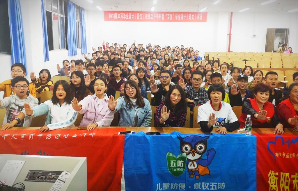 活动之初,衡阳蓝丝带志愿者协会策划部部长肖俊就其协会情况进行了简要介绍,随后,由曾临萍就活动主题“儿童五防”展开授课。在发言中,曾临萍指出儿童“五防”的定义——防性侵、防拐卖、防校园暴力、防意外、防灾害,并表示希望通过对在场大学生的授课让更多青年学子投身于儿童五防的工作中,从而使更多儿童提前了解并掌握相关的知识,在一定程度上避免伤害。曾临萍绘声绘色的教学在实现此次安全教育课“儿童防侵,赋权五防”目的的同时,也让在场听众逐步了解到面向儿童普及“五防知识”的方法以及重要性。