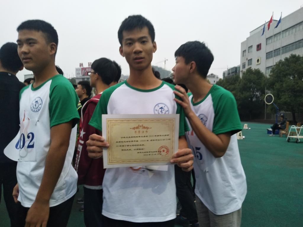 在男子一万米的极限挑战之中,我院18级预防04班的黄钰鑫同学以坚韧不拔,顽强拼搏的精神成功完成了此次比赛,并获得第七名的好成绩。“在比赛前,我心里没有想象中的紧张”,他如是说。就算瑟瑟寒风,微雨绵绵,他依旧拼尽全力,向着前方迈进。宝剑锋从磨砺出,梅花香自苦寒来,一个多月的训练让他在最后一刻能勇往直前,不惧一切,取得优秀的成绩。