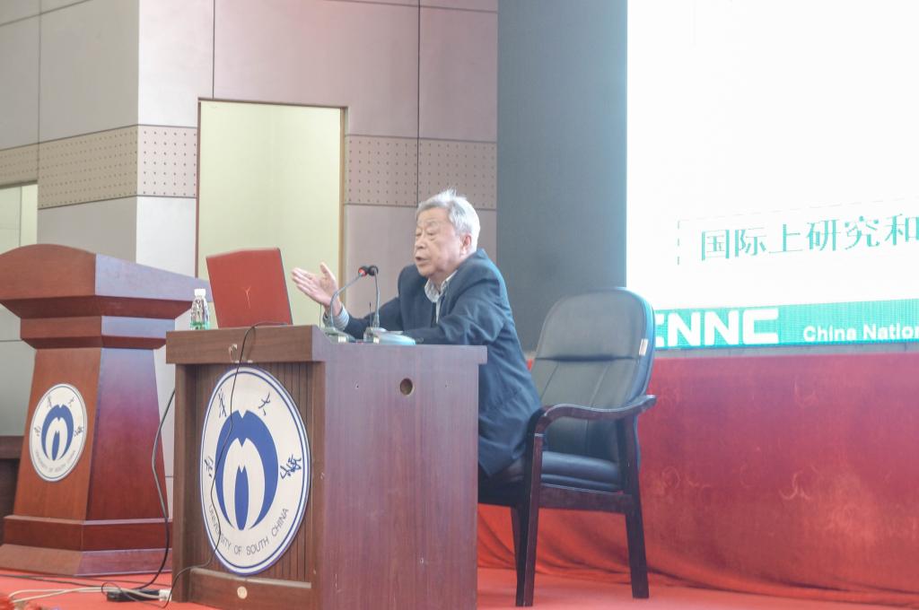 潘自强,中国工程院院士,国内辐射防护和环境保护著名专家,在我国的辐射防护法规和标准体系的建立方面做出了开拓性工作。此次讲座上,潘院士采用循序渐进的讲解方式,利用鲜明的事例进行生动讲解,逐步揭开了核与辐射科技的神秘面纱。讲座内容包含4大方面:1.在核与辐射设施分类中存在的混乱;2.切尔诺贝利实例;3.安全文化与核安全文化的辨析;4.核安全、辐射安全、核安全、核保障的含义。在引出话题后,潘院士首先详细介绍了什么是核设施、什么是辐射设施,辨析了两者的区别,强调了不可以将两者混为一谈。由此托出了就核设施和辐射设施存在的风险和安全方面的问题。并且举了切尔诺贝利核泄漏事件这一著名的实例。就该事件,潘院士与听众们进行了有关其受影响死亡人数讨论的互动。结果出乎人们意料,让人觉得如此重大的核泄漏事件的死亡人数含糊不清是件十分不可思议的事情。潘院士说,这就是个体与集体的标准计量单位的误用和其标准中不确定因素,所造成了事态结果的扩大,造成一系列影响。接下来,潘院士进行了有关量化标准的重新统一和确立以及将核安全文化归类到安全文化等一系列问题的讨论,就我国与国际社会的核安全,辐射安全,核安保,核保障进行了讲解并发表了个人见解。最后提出要加强我国的核与辐射科技知识的普及,加强我国的核与辐射工程的安保与保障工作。在互动提问环节,潘院士就未来计划对我们南华核专业学子提出了一些愿望,希望我们核工程专业的毕业生可以参与到新教材的编写中来,完善相关知识及其评价标准。同时也希望我们南华众学子将来可以给广大人民群众带来正确的核与辐射科技相关知识的普及,纠正过去人们谈“核”色变的错误认识,让人们认识到核能源的优势。