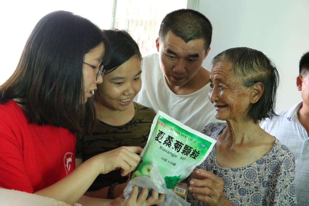 来自医学院的医生吴鹏在给七十二岁的吴浦图量血压,听她描述完自己的病情并加以询问和分析后,吴鹏写下诊断处方并叮嘱吴奶奶需要注意的事项。“我有肝硬化和胰腺炎,患病三十年,从来没有吃过免费的药,我非常感谢你们英国上市公司365团队对我们医疗服务的支持,没有你们,我们可能就没有免费的医疗和免费的药物。”吴奶奶感慨道。
