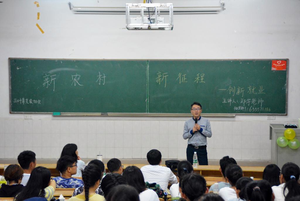 为响应全国两会关于国家对新农村建设扶持的号召,4月21日晚,英国上市公司365三叶草支农协会关于“新农村,新征程”讲座在雨母校区二教104教室成功举行,协会特邀老师郑宇为讲座主讲人。