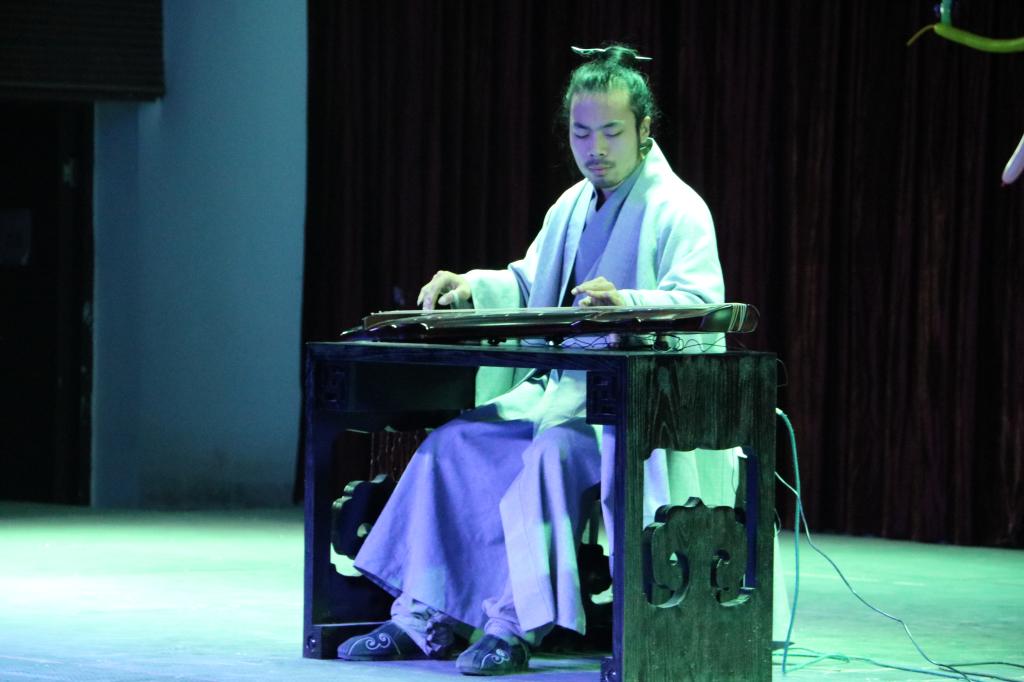 音乐会在街舞协会带来的开场舞中拉开帷幕。首先上场的节目是由吉他协会带来的《别犹豫,都选C》,明快而悠扬的旋律在现场回荡,观众们享受着吉他弹奏的欢快。接下来由口琴协会带来的《Fish in the pool》是一片电影的主题曲,温柔的旋律,熟悉的音乐一下子将观众带入到电影的情节当中。此次活动不仅有各个协会的单独演出,而且有协会之间的合作演出,音乐会的弦乐合奏、管乐合奏、管弦合奏为现场众多音乐爱好者带来了一场视听盛宴。随后是清风器乐社带来的笛子演奏《邮递马车》,欢乐的旋律仿佛让人来到了边远的牧场,切身地感受到邮递马车为人们送来信时的喜悦心情。晚会还特意邀请到衡阳古琴协会副会长黄在羽老师为大家现场演绎了古琴古曲《流水》,随着琴声的缓缓起奏,那段俞伯牙与钟子期脍炙人口而感人至深的故事仿佛浮现在眼前,带给听者无尽的遐想。吉他协会会长张森林说道:“我们举办这次晚会的目的就是想让大家看到西洋乐器与民乐的完美结合,给大家更好的听觉享受。”