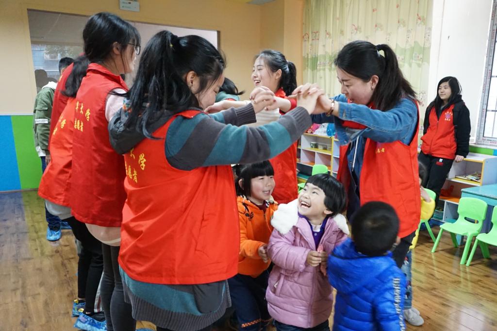活动接近尾声时,志愿者一字一句地教孩子们唱《两只老虎》、《拔萝卜》等儿歌,并配上简单的舞蹈动作来方便教学。志愿者蔡雪说:“教孩子们唱儿歌,能够让我们倾听这些‘特别’的孩子发声。听见他们发出的音节,我们真的很开心。”活动结束后,志愿者与孩子们依依不舍地告别。