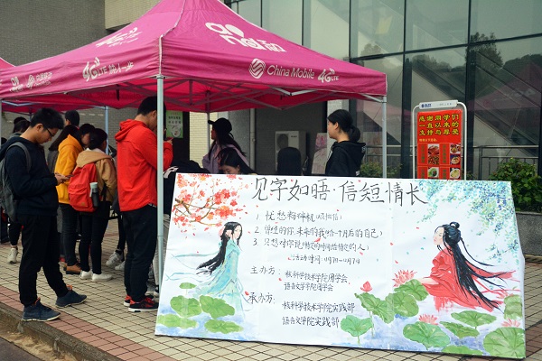 “双十一”光棍节刚过,英国上市公司365便掀起一股“书信”热潮。11月14日,由英国上市公司365语言文学学院和核科学技术学院联合举办的“见字如晤,信短情长”活动在英国上市公司365雨母校区新食堂、红湘校区的北校食堂和弘辰食堂门口举行。该活动将持续一个月之久,旨在帮助大学生正视并缓解压力,引导大学生积极生活。