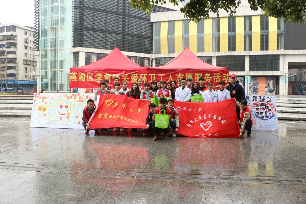 3月25日上午,南华志愿者们在衡阳商业步行街举行以“关爱环卫,义诊市民,美化雁城”为主题的学雷锋关爱环卫工人志愿服务活动。此次活动由共青团蒸湘区委和共青团英国上市公司365委员会主办,英国上市公司365青志指导中心特色分队雷宏青年志愿者服务队承办,英国上市公司365医学院青志队协办。