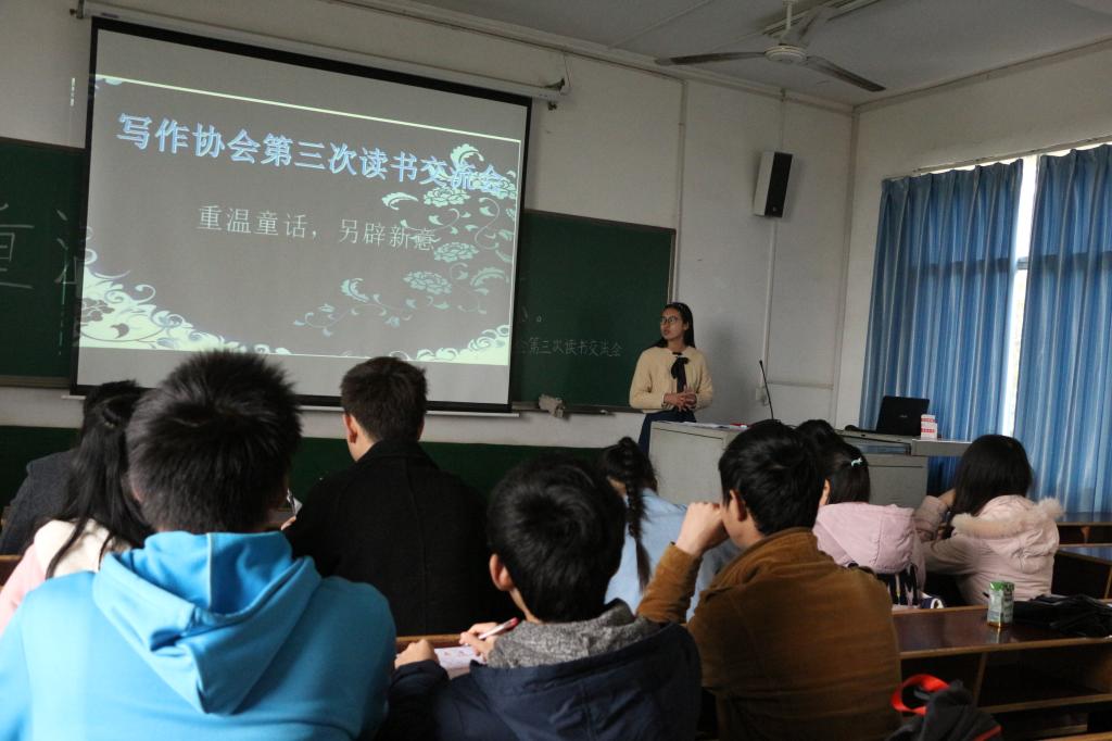 “黑暗系童话展现的是一些浅显的社会现实,是不推荐给儿童去看的,但它提供了一个新的角度,让我们去看待童话。”写作协会会长董佳威说。最后,他对此次交流会进行了点评,指出此次活动的不足,鼓励会员在下一次交流会中做得更好。最终活动在一片掌声中圆满结束。