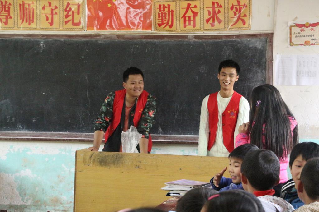 据了解,当日是世界足球日,志愿者们还在操场上带领留守儿童踢足球,以自己的经验教授相关技巧,给小朋友们带来了不一样的乐趣。
