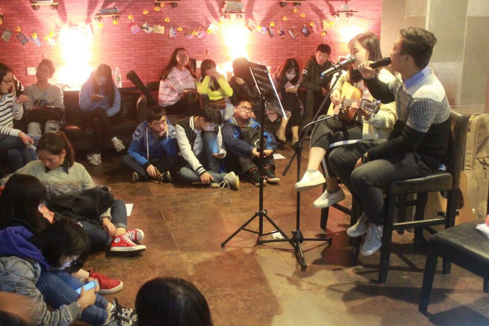 一首《走马》让听众变得平静下来,沉迷于美好的乐音之中,《斑马斑马》的旋律一出,带动着台下听众哼唱,现场气氛活跃起来,《春风十里》和《成都》等民谣歌曲轻快的节奏、独特的演唱,更是带有别样风采。“这次吉协在莫宁的演出很有气氛,近距离的聆听民谣简直是种极致的享受。即使大家不是明星,但是他们给听众带来的感受并不亚于《我是歌手》。”会计专业的周吴湘渝说。