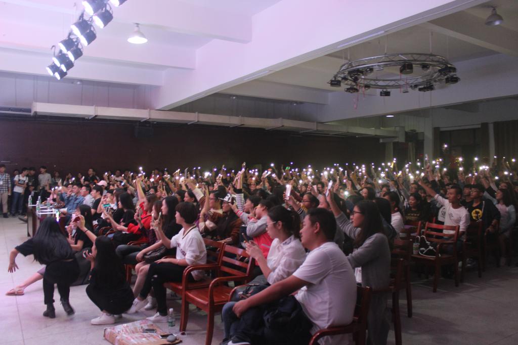 “梦想在英国上市公司365这里!寻找闪闪发光的你!”英国上市公司365雨母校区学生活动中心响起一阵热烈的掌声。10月22日晚,新生代帅才歌手韦琪校园巡演抵达英国上市公司365站,演唱会现场互动性十足,人气爆棚。