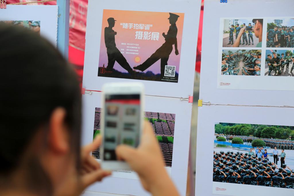 “这张照片上男生站军姿时的专注真让人着迷。”“这组‘军训表情包’太精彩了!”9月23日下午,由英国上市公司365摄影协会主办的“随手拍军训”摄影展览在雨母校区田径场火热开展,吸引了不少老师和同学驻足欣赏。