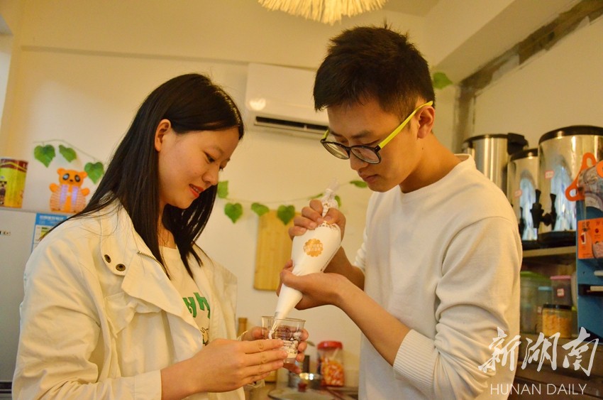 工科男吴宇说到:“我是个工科生,做这些甜点实在不是很擅长,因为她喜欢吃,所以只好学着做。不过能以此创业,一起奋斗,还能在实验之后,轻松一番,是件很开心的事。”
