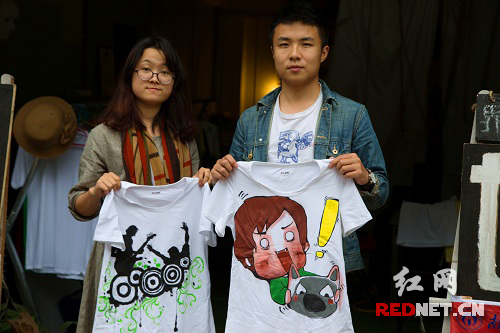 人像石头也具有极大的吸引力,将客户的样子用漫画画在石头上,吸引了很多人前来订制,有跟闺蜜一起画像的,也有独自画像的。“看到自己的样子被画到石头上面,感觉很文艺。将一块普通的石头,变成有精致画像的艺术品,还以此创业,我觉得他们很不错。”前来购物的大二男生李睿欣说。还有不少情侣前来订制画有卡通版自己或者双方的T恤。