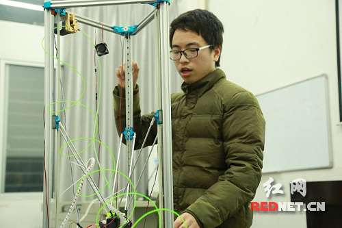 来自机械工程学院的钟乔恒所做的“Detla型桌面3D打印机”和“机械手”两项实用技术类参赛作品,获得评委一致好评。其中,“Detla型桌面3D打印机”构思巧妙,做工精细,能通过程序打印出各式各样的精美作品,既是高端的科技与文艺气息的结合,又有着时尚范。有的评委干脆说:“我们都是你的粉丝了!”