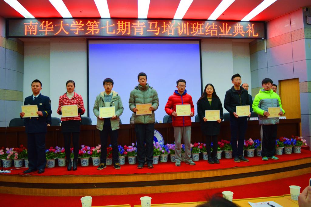 最后,由校团委副书记刘文君老师宣读优秀学员名单,在参加培训同学中,团学组织获奖人数为21人,分别是校团委科技创新中心2名,校团委四部门4名,校团委学生社团联合会2名,校学生会3名,校团委青年志愿者指导中心2名,同伴教育阳光站1名,两弹一星1名,大艺团3名,创业就业服务中心2名以及研究生院、国防生大队、各学院优秀学员共30名。副校长刘升学等领导颁发优秀学员结业证书,并与晚会嘉宾和所有的优秀学员代表合影留念。优秀学员代表医学院吴宇鹏同学在发言中表示青年马克思主义者要坚定不移的走下去才可以使中国发展的更好。