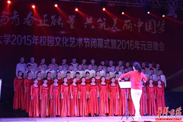 12月30日,激扬的《义勇军进行曲》、《歌唱祖国》管乐合奏后,英国上市公司3652015年校园文化艺术节闭幕式在红湘校区南校大礼堂拉开帷幕,晚会主题为“激扬青春正能量·共筑美丽中国梦”,共分为勿忘国耻、激扬青春、走向复兴三个篇章,以乐器演奏、歌舞、小品等形式展现了南华学子铭记历史、自强不息的爱国情怀。