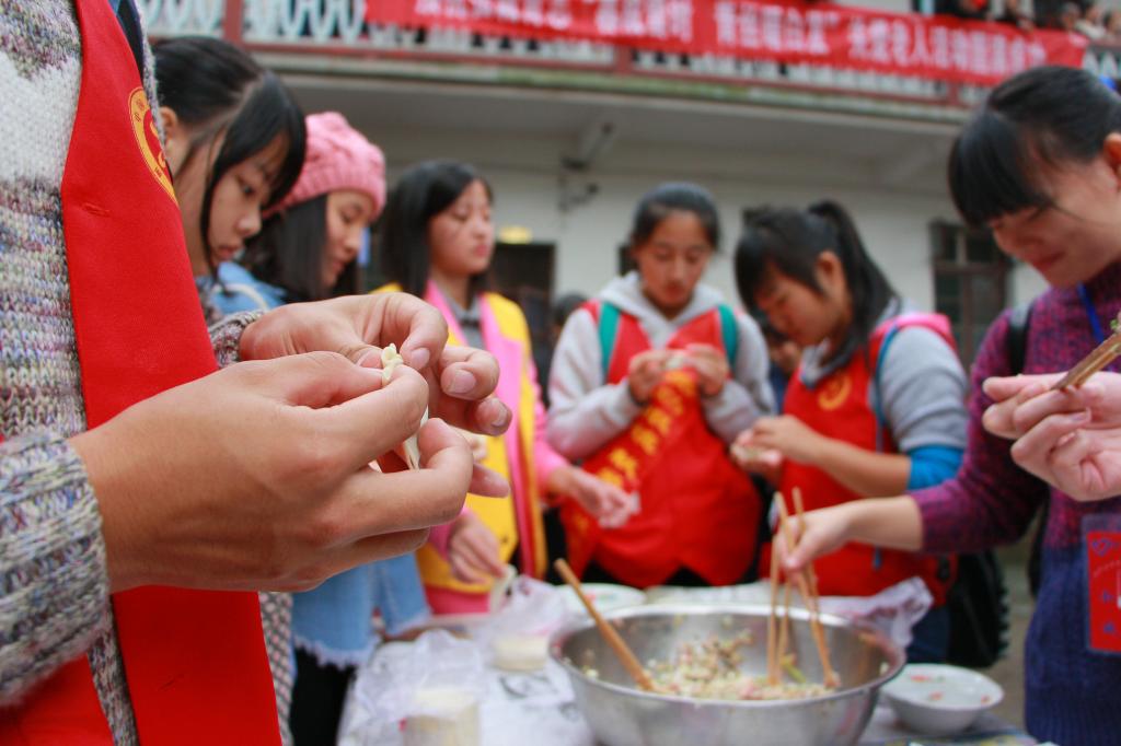 在敬老院,志愿者们给老人们带去了新鲜的水果,给敬老院打扫卫生,为老人们包饺子。饺子煮好后,还喂老人们吃饺子,为老人暖手,陪老人聊天解闷。