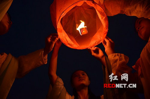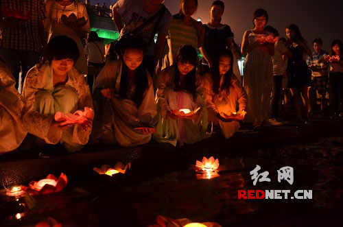 当日,是我国传统的中秋佳节,不少学子因路途遥远不能归家与家人团聚,对此他们自发组织了此次活动,身着汉服结伴来到湘水之畔,放孔明灯,放河灯,写祝福等多种汉文化传统形式寄托对远方亲人