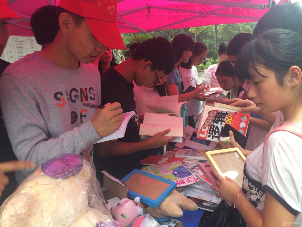志愿者们在活动场地正中央摆放了义卖展板,详细介绍此次义卖的意义和社会责任感。正值午餐之时,许多过往学生停下匆忙的脚步,挑选心仪的物品、捐出爱心的善款、写下自己的留言,热情地参与义卖活动,为抗战老兵献出自己的一份爱心。部分学生还赶回宿舍把自己不用的物品带到义卖现场进行捐赠。据悉,这些义卖物品大多是同学们的捐赠物,有英语考级资料、参考书、杂志、文学书籍,还有玩偶、饰品等。