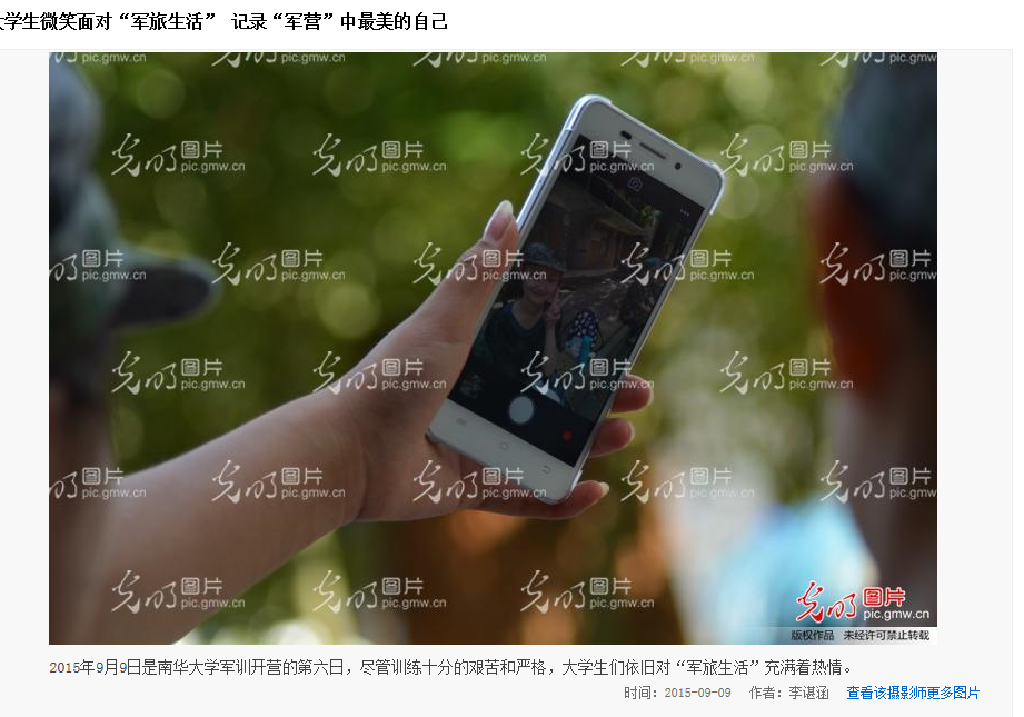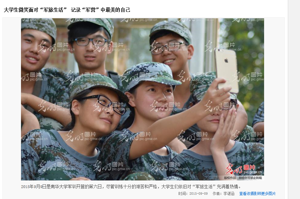 大学生微笑面对“军旅生活” 记录“军营”中最美的自己
