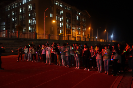 跑完三圈的同学气喘吁吁地用手中的微笑贴兑换善款,手上的荧光棒闪闪发亮,与天上的星光交相辉映。当被问及参与活动的感受时,助跑者表示,虽然1200米的长跑有些艰难,但是想到能尽绵薄之力帮助学姐,就咬牙坚持了下来。相信在星光的见证下,这份深厚的爱将传递给需要温暖的林华英,希望在大家的爱心鼓励下,林华英能够战胜病魔,早日康复!