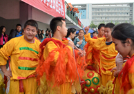 他们是在绿茵地上奔腾跳跃的雄狮,他们无数次的排练只为了在大运会的开幕式上能给我们带来一个精彩的开篇。我们为他们精湛的表演技术欢呼喝彩。也许你们记住的,只是他们精彩的演出。也许你会认为表演完之后,迎接他们的会是鲜花和温暖,可事实上不是这样的。厚厚的道具服和巨大的运动量让他们在冷风中也流出来许多汗水。把头套摘下来的时候,每个人额头与脸上,都是密密麻麻的汗珠。可是他们还不能休息,表演用的道具还留在了田径场上,没有人帮他们搬回来。是他们自己,又辛苦地把他们表演用的道具桌子从田径场搬回来,因为他们要为接下来比赛的运动员留下足够宽敞的场地。他们脸上那夹杂着汗水的笑容告诉了我,累但是他们很快乐。