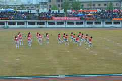 寒风中,你们穿着单薄的表演服在田径场上跳动中。你们用你们优美的舞姿来给场上的运动员加油打气。比赛的时间到了,可你们还没有跳完。我以为你们会退场。可让我没有想到的是你们保持整齐的队形站立在冷风中一动不动。观众席上有人穿了两件长袖却还在抱怨着冷,那你们呢?我不禁对你们肃而起敬了。一组比赛结束,你们热情不减的接着欢快的跳动着。你们就是田径场上的天使!