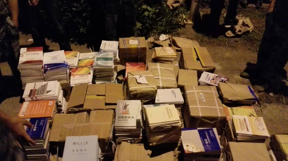各班负责人在收拾好班级内所有同学的发票和报名流程表之后,经工作人员确认无误签字同意后依次按照交表顺序进入书库,领取各课程相关专业书籍。书库内,各班负责人在老师的引领下按照表单顺序从相关书库领走所需教材。教材全部领完后,再由负责人核实确认后由班级同学自行领走。