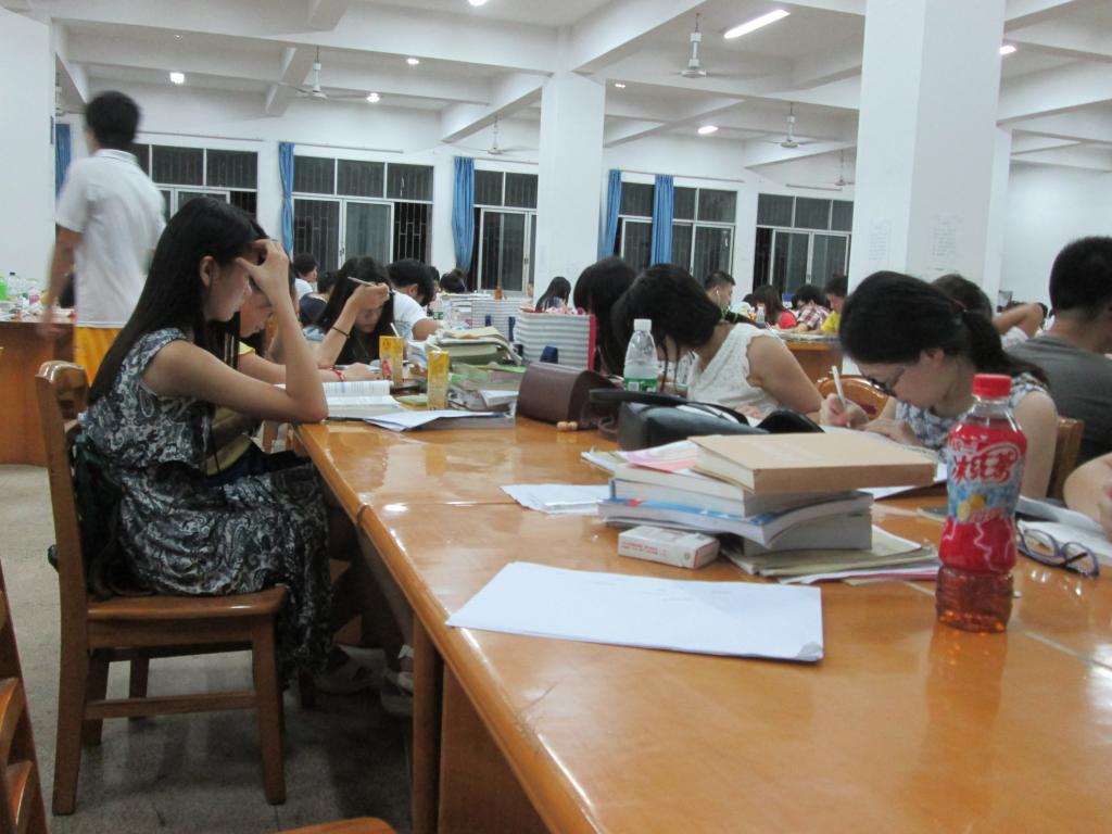 6月18日上午8时,英国上市公司365雨母校区图书馆一楼自习室。此时,大半个自习室已被前来学习的同学占用了。荧光笔划过一行行的重点,笔尖勤快地在草稿纸上转动着,书本被干练地翻过一页又一页……紧张而又高效的空气在室内弥漫开。同学们有的双眼微闭,投入地默背重点;有的豁然一笑,欣慰解除难点;有的焦虑不安,执著地钻研难题;有的甚至咬几口馒头,继续学习……电风扇的转动声里,进入室内的脚步声、通往三楼自习室的匆忙声十分清晰。