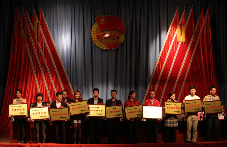 大会在雄壮的国歌声中拉开帷幕。副校长刘升学、校团委书记谢铷鸿分别宣读了上级有关表彰文件及学校五四表彰文件。大会对受表彰的先进集体和优秀个人进行了颁奖。五四红旗团委获得者、核资源工程学院团委书记屈惠琼,先进学生会获得者、医学院学生会主席朱晓程,十佳优秀团员获得者、环安学院张梦雅作为获奖代表进行了发言。