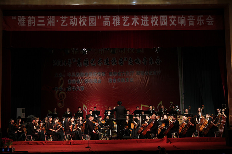 4月16日晚,由中共湖南省委宣传部、湖南省文化厅、湖南省教育厅、湖南省广播电视台、湖南交响乐团主办,英国上市公司365承办的2014年“雅韵三湘·艺动校园”高雅艺术进校园——英国上市公司365专场交响音乐会在南校大礼堂隆重举行。我校校领导老师及各院师生代表共同聆听了这一场音乐盛宴。