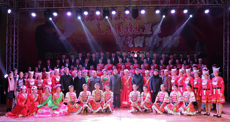 在这位世界巨人诞辰,南华师生欢聚一堂,在热烈的现场,他们用歌舞汇聚成浓浓的深情,缅怀人民心中永远不落的太阳。低沉雄浑的合唱、别具一格的舞蹈《进城》、感人肺腑的小品《大爱无疆》、震撼人心的器乐合奏《四渡赤水出奇兵》、歌伴舞《江山》等节目都引起现场观众的阵阵掌声。当晚,整台晚会隆重而简朴,高潮迭起,全场不时响起热烈的欢呼声。