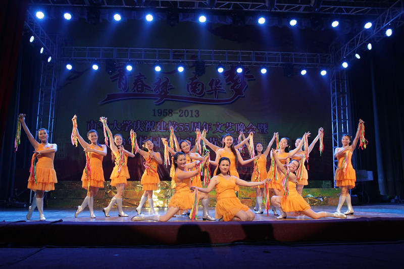 晚会分为“奋进篇”“辉煌篇”“跨越篇”三个部分,雄浑的大合唱《河》、《龙的传人》唱响了“奋进篇”的开始。大学生艺术团舞蹈队的女子群舞《万泉河水》展现了当年红军的峥嵘岁月,男子群舞《雪域雄鹰》传达了藏舞中的热情奔放,同时也表现出南华学子的刚健自强。核科学技术学院和医学院带来的歌伴舞《春天的芭蕾》引领青春的步伐,招引时代的气息,他们以自己独特的视角来表达对母校的祝福,来表达南华学子敢为人先的精神。“辉煌篇”中,大学生艺术团主持人队带来的配乐诗朗诵《南华梦》情真意切,让在座的每位观众心中泛起了层层的触动,每位南华学子都以母校为荣,以母校为傲。器乐合奏《喜洋洋》《金蛇狂舞》再度让现场的氛围欢快起来,全场沉浸在喜迎校庆的喜悦之中。女教师代表表演的《韵律》获得了一阵阵的掌声和欢呼声,老师们洋溢着无穷的活力,散发出夺目的光彩,让全场观众的目光汇聚一点。经济管理学院带来的舞蹈《玉生烟》甜美婉约,举手投足间流露出的温婉柔美让人似乎看到了母校对学子无声无息的爱。“跨越篇”中,校工会带来的说唱快板《跨越》说唱出英国上市公司365五十五载栉风沐雨,五十五载春华秋实,世界见证着南华久经岁月的容颜,目睹着南华叱咤风云般飞奔向前。由附属南华医院带来的歌伴舞《桃花谣》引动重回南华的追梦人心中无限的感触。由英国上市公司365附属第二医院和设计与艺术学院带来的杂技表演《力量》更是持续的点燃着观众的热情,掌声不停、欢呼不断。他们优雅从容的动作中体现出巨大的力量。最后大型舞蹈《盛世鸿姿》表达我们期待着母校以盛世鸿姿实现新的跨越!