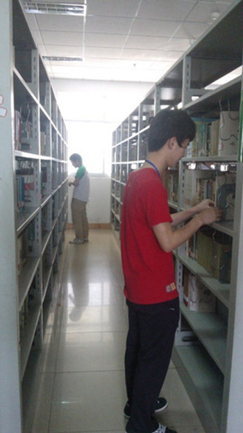 2013年5月11日,青年志愿者总队党员志愿者服务队在学校图书馆开展一年一次的图书修补活动,营造了人人爱书、人人保护书的良好氛围,为全体学生创造了一个更加舒适、清新的读书环境。