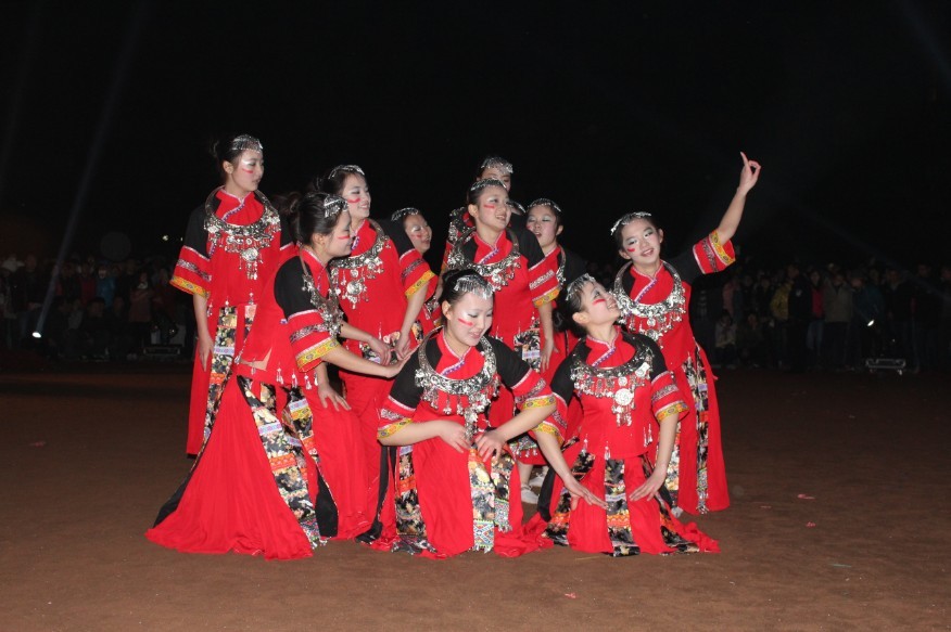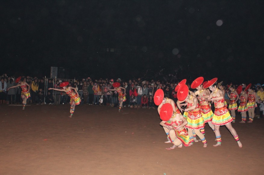 在气势恢弘的舞龙表演中晚会拉开帷幕。节目异彩纷呈,观众们热情高涨。随后由唯美动人的外国语学院姑娘献上的《一抹红》为晚会注入了一股浓浓的民族气息。最让人期待的无疑是大型群舞《南华style》。师生们手拉着手,载歌载舞。青春在歌声中飞扬,年华在舞蹈中炫动。熊熊的篝火点燃了全校师生迎接新年的激情,现场气氛持续升温,南校体育场成了一片欢乐的海洋。而国防生大队的倾情献唱以及与同学们的拉歌,更是让不少观众重温了那段艰苦而又快乐的军训时光。穿插在期间的兔子舞将全场带入一个又一个高潮,大家手拉手围着篝火欢乐的舞动着,脸上洋溢着幸福与欢乐。在整场晚会中,校党委书记邹树梁、副书记赵红等领导深入广大师生,一起载歌载舞迎接新年的到来。