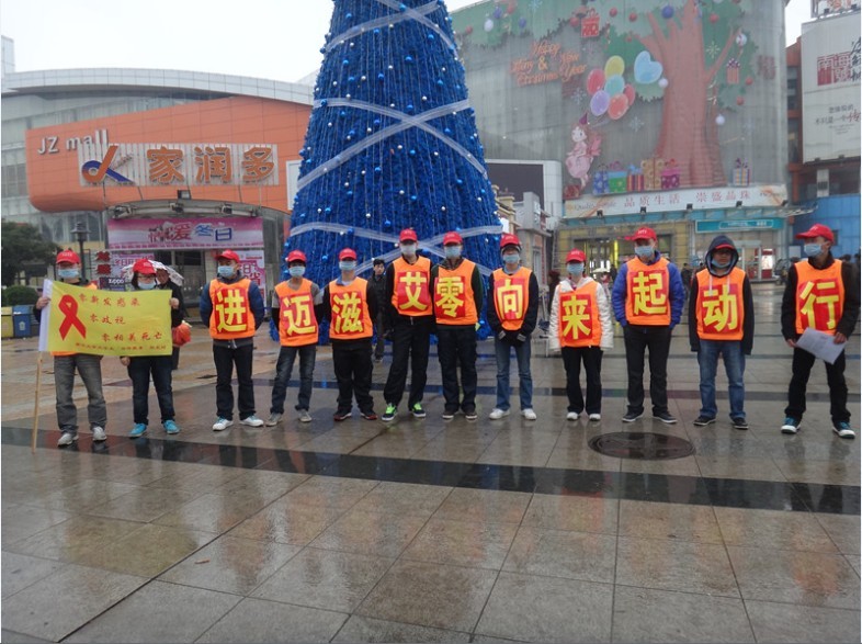 参加校外骑行活动的志愿者们在南华正门集合后,开始了反对歧视,尊重艾滋病人权益的穿行衡阳主干道活动。当日九点多,微雨,骑行及跑步开始,阳光站的志愿者们身穿黄色有红丝带标志的马甲,喊着口号朝气蓬勃的出发了。 “这么冷的天,下着雨、吹着寒风,他们一动不动地站在食堂门口,这种志愿者精神真的很让人感动。”一位路过的同学说。虽然下雨的衡阳比较冷,风雨飘摇中,志愿者们仍坚守在防艾的战线上。当天的祈福是在傍晚将近六点开始,七点结束。期间,志愿者们将自己制作的一盏盏花灯摆放在南华广场中央的喷池边上手捧烛灯站成了两个红丝带为艾滋病患者/病毒感染者默默的虔诚祈福,随后向路人详细宣传防艾知识。不少路过的同学纷纷写下对艾滋病患者/病毒感染者的祝福并放花灯。一位老爷爷在在点灯时告诉孙儿今天是世界艾滋病日并说预防艾滋病,人人有责。老爷爷的话让在场的志愿者们倍受鼓舞。