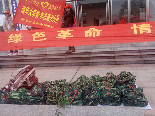 传递南华大爱,心系农民工。本次“绿色革命,情暖民工”的军训服捐赠活动结束了,但奉献社会的志愿者精神将会在南华校园继续传承下去。