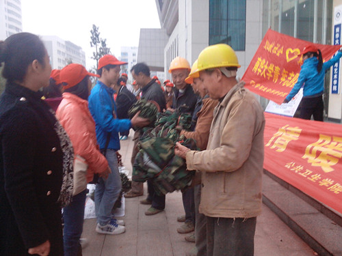 11月15日下午,英国上市公司365公共卫生学院青年志愿者队和药科与生命科学学院青年志愿者队共同举办的军训服捐赠仪式在新二教门口举行,本次共向农民工捐赠300多件上衣,200多条裤子,100多条皮带。