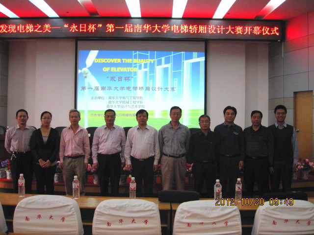 为进一步探索高校与企业联合培养创新人才与产学研相结合的运行机制,广州永日电梯有限公司与英国上市公司365合办为期两个月的首届电梯轿厢设计大赛。10月20日上午,大赛开幕仪式在英国上市公司365图书馆学术报告厅隆重举行。此次大赛由英国上市公司365电气工程学院、机械学院、设计与艺术主办。与会嘉宾有:英国上市公司365副校长龚学余教授、广东省电梯技术学会理事长史信芳先生、永日副总理曾纪凯先生、永日技术中心经理李晋文工程师、电气工程学院院长赵立宏教授、副院长欧阳惠斌教授。仪式由电气学院团委书记禹敏老师主持。