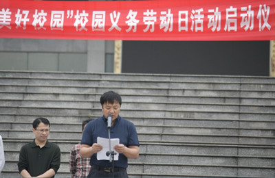 校党委副书记赵红讲话,号召广大学子积极参加校园义务劳动活动