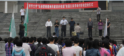 校党委副书记赵红出席活动启动仪式并作重要讲话。“校园义务劳动日活动对于进一步学习和弘扬雷锋精神,推动学雷锋常态化、机制化,共同营造洁净优美的校园环境,具有积极地影响和重要意义。”他强调了活动的重要意义,指出校园文明是学校校风和学风的标志。南华是我家,美化靠大家。赵书记寄语广大学子积极参加校园义务劳动,为校园的环境美化、为学校的建设发展、为自身的全面进步作出最大的努力。并对南华学子提出三点希望与要求:一是告别陋习,做文明大学生;二是深入学习雷锋精神,切实提升思想道德素质;三是长抓不懈,努力创建和谐校园。