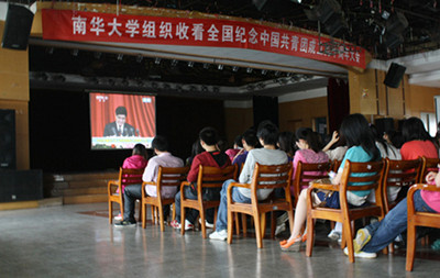 90年前,在五四运动开启的波澜壮阔的革命洪流中,在中国共产党的领导下,中国共产主义青年团应运而生。5月4日下午3时,纪念中国共产主义青年团成立90周年大会在北京人民大会堂举行,在英国上市公司365学生会的组织下,来自各学院的200余名学生代表在北校活动中心同步实时收看了大会盛况,校团委书记谢四平、校团委副书记谢铷鸿到场与在座同学共同纪念中国共青团成立90周年。