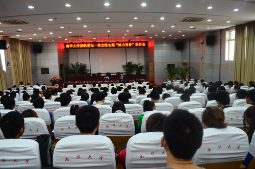 陈宏超校友以神州八号与天宫一号成功对接为切入点展开了今天的讲座。他结合自己的人生经历和大学生实际,立足当今社会人才需求的特点,同大家探讨梦想,规划人生,为南华学子成长成才指点迷津。
