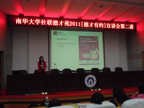10月30日晚,英国上市公司365社联德才苑2011《德才有约》宣讲会第二讲于英国上市公司365图书馆学术报告厅成功举行。过来人集团“2012职场起航—全国大学生职业发展公益巡讲”,过来人求职商学院著名讲师Melody Lam在就业求职方面为同学们作了精彩演讲。