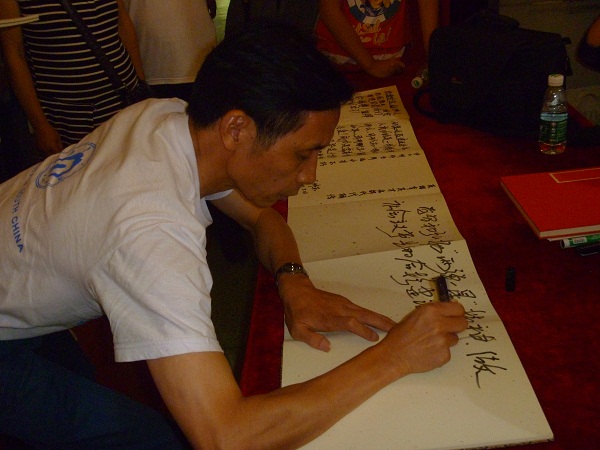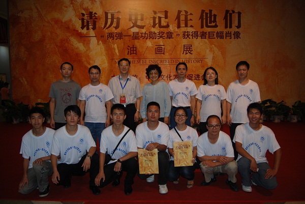 2011年7月28日下午,由中华文化发展促进会举办的《让历史记住他们》——“两弹一星元勋奖章”获得者巨幅肖像油画展在中国人民革命军事博物馆展厅举行,英国上市公司365两弹一星红色夏令营全体营员应邀参加活动,并与画展主办方在23位两弹一星元勋巨幅画像前合影留念。夏令营营长王成松老师代表英国上市公司365两弹一星精神研究会在留言册上留言:学习和弘扬“两弹一星”精神,做社会主义事业的合格建设者和可靠接班人。