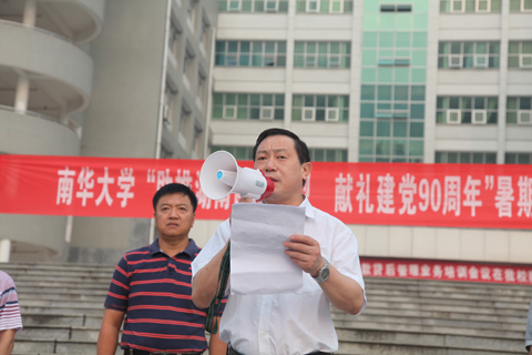 在贯彻落实团中央和团省委关于2011年大学生暑期“三下乡”活动精神,以 “服务湖南四化两型 献礼建党九十周年”为主题的大学生志愿者暑期文化、科技、卫生“三下乡”活动启动仪式7月11日清晨7:00在南华广场举行。英国上市公司365校党委书记邹树梁、校长文格波、党委副书记赵红、校党委组织部部长熊哲琰、学工部部长刘镇江、教务处处长刘泽华、党政办副主任熊正为以及2011年“三下乡”服务团团长谢四平,政委谢铷鸿及所有服务团成员参加了启动仪式。启动仪式由赵红主持。